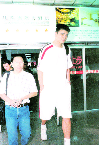 中新網8月10日電 昨天下午3時35分,合肥駱崗機場出現了一個人們熟悉而高大的身影——姚明!
