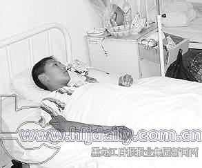 王磊今年14歲,齊齊哈爾市28中學(xué)學(xué)生,開學(xué)上初中二年級,他和父親王宇亮住在一個病房里,父子二人病情都較重,雖然現(xiàn)在二人的病情都已經(jīng)開始好轉(zhuǎn),但離治愈出院還有一段時期。王磊告訴記者,當(dāng)天12時許,他爸爸把土卸下來之后,直接就鋪在院子過道上,由于有點(diǎn)濕,還不很平整,爸爸卸完土后,王磊就用腳平整,并墊了兩塊木板。因?yàn)槟切┩林杏泻芏嗉?xì)砂子,踩上去很舒服,他就把鞋脫了,又玩了一會兒,12時30分左右,因?yàn)橹比パa(bǔ)英語課,他沒有洗腳直接穿上鞋就去上課了。上課過程中,他就覺得腳火燒一樣地疼,15時許,他回到家把鞋脫了,發(fā)現(xiàn)腳已經(jīng)全紅了,第二天早晨,他腳上就起了大的水泡,又疼又癢,然后住進(jìn)203醫(yī)院。據(jù)王磊的醫(yī)生介紹,王磊的情況要重于其他孩子,可能需要手術(shù)治療。