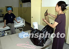 8月12日上午,北京地壇醫(yī)院一名54歲的男性SARS康復(fù)患者,告別了“與世隔絕”的一百零六天駐院時光由夫人接出院。該院的其余幾名SARS患者將于本周內(nèi)陸續(xù)出院。中新社記者:任晨鳴