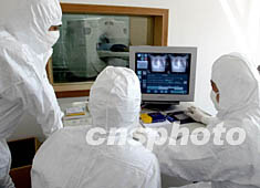 在北京地壇醫(yī)院住院治療的中國最后一批SARS患者,預(yù)計本周內(nèi)全部康復(fù)出院。8月12日上午,多名專家為這幾名患者做詳盡的CT等項檢查。中新社記者:任晨鳴