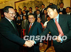 中新社北京八月十三日電(記者邢利宇)國(guó)務(wù)委員唐家璇今天下午在釣魚(yú)臺(tái)國(guó)賓館會(huì)見(jiàn)了參加“華僑華人回國(guó)(來(lái)華)創(chuàng)業(yè)成功人士座談會(huì)”全體與會(huì)代表。
