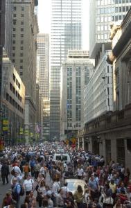 曼哈頓最著名的十字路口哥倫布環島地帶正值交通運輸高峰期,人流移動的非常緩慢,每個路人都非常小心。交通警察正在盡其所能指揮交通。