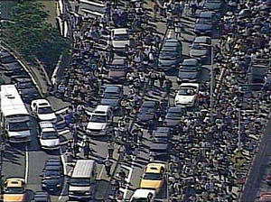因為地鐵服務已經中斷,現在自己沒車的人只能徙步行進。