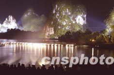 由著名導演張藝謀任總導演的大型山水實景演出《印象.劉三姐》十六日在桂林陽朔漓江上舉行開排儀式。該演出集漓江山水風情、廣西少數民族文化及中國精英藝術家創作之大成,歷時三年半努力創作,是世界上第一部全新概念的“山水實景演出”。中新社記者:毛建軍