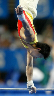 楊威被認為是爭奪男子個人全能金牌的熱門人選,但今天狀態一般,失誤頻頻。黃玉斌認為,主要是因為他太想賽好,有些緊張,動作放不開。好在預賽成績不帶入決賽,還有機會。