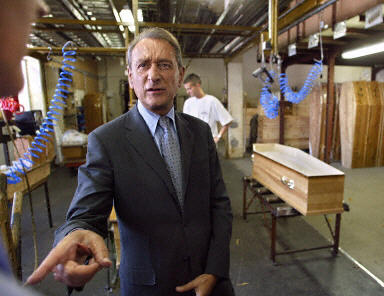 巴黎市長伯特蘭·德拉諾20日造訪法國殯儀業工廠