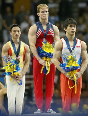 悉尼奧運(yùn)會銀牌得主、中國名將楊威是以資格賽第十的身份進(jìn)軍決賽的,由于在賽單杠和自由體操兩項出現(xiàn)明顯失誤,尤其是自由操出現(xiàn)了一個扣除0.7的大失誤,他的資格賽排名比較靠后。