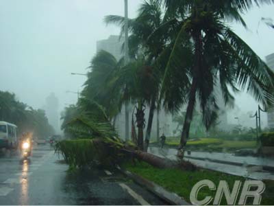 由于受到大范圍停電的影響,記者到八時三十分才能打開電腦寫稿,但是短短一篇稿件的撰寫中,卻經歷了四次停電。記者一大早在中新社海南分社附近地區看到,今晨橫掃海口的“科羅旺”在城市的樓宇中穿行,強大的氣流形成了類似乎警笛一樣的怪叫聲,整個城市處于一種莫名的氣氛中。