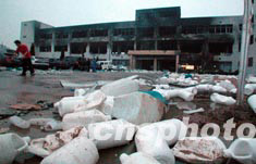 8月27日,位于鄭州市高新技術開發區的河南恒生中科化工股份有限公司的工人正在打掃散落的玻璃碎片和塑料桶。26日,該公司倉庫發生火災爆炸事故,沒有人員在事故中傷亡。爆炸原因可能是這家公司新購進的石腦油泄露造成,初步估計損失達24萬元人民幣。作者:慎重