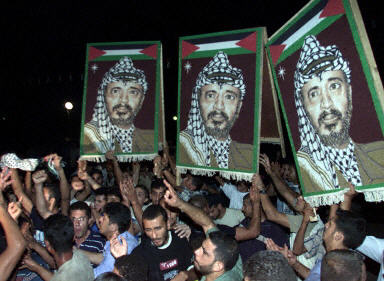 就在以色列做出上述決定的同時,阿拉法特依然受到數(shù)千支持者的擁戴,當他在周三走出辦公總部時無數(shù)的支持者在向他歡呼。身旁有保鏢保護的阿拉法特向支持者拋去飛吻,并做出勝利的姿式。在加沙城市中心,5000多人走上街頭進行游行表達對阿拉法特的支持。(春風)