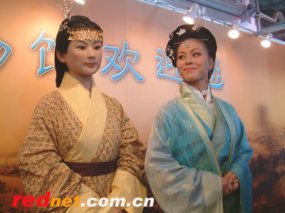 中新社長沙九月十二日電(豐冰余婭琳)“真還有點像呢。”“似乎也不是很像啊?”作為“二00三年中國湖南旅游節(jié)”重頭戲之一的湖南旅游博覽會今日下午剛一開幕,展會一隅便立即被圍得水泄不通,一位長相俏麗的年輕女孩成為了眾人關注的焦點,觀眾爭相對這位傳聞中西漢長沙國丞相夫人辛追的后裔評頭論足。