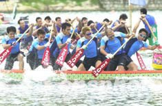 2003年亞太城市龍舟邀請賽決賽及小龍公開賽決賽十四日在澳門西彎人工湖舉行,澳門理工學院職業技能培訓中心獲得男子總決賽冠軍。中新社記者:李剛