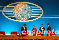 第六屆中國(guó)北京國(guó)際科技產(chǎn)業(yè)博覽會(huì)九月十五日在北京閉幕,國(guó)務(wù)院副總理吳儀(左二)、中共北京市委書(shū)記劉淇(右)等參加閉幕會(huì)。中新社記者·:張宇