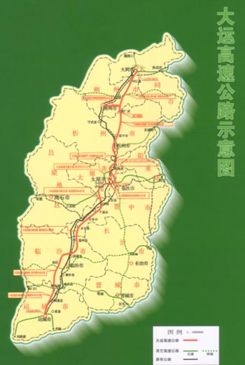 據(jù)介紹,到二零零五年,山西全省公路通車?yán)锍虒⑦_(dá)65000公里,高速公路2000公里,省會到各市(地)3小時(shí)高速通達(dá)。