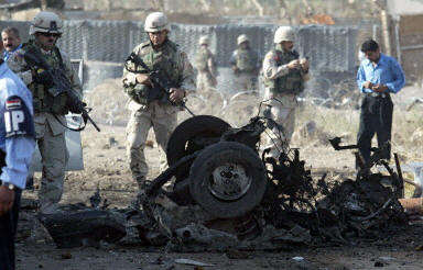 中新網9月22日電據路透社報道,目擊者稱,當地時間今日上午(北京時間今日中午)一輛汽車在巴格達市中心聯合國駐伊代表處附近的一個停車場發生爆炸。美軍發言人稱,這是一次自殺性炸彈襲擊,至少兩人被炸死,其中一人為自殺者本人(汽車司機),另一人為伊拉克警察,另有20多人受傷。
