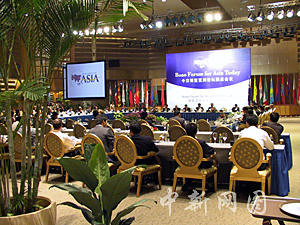 前來參加博鰲亞洲論壇永久會址揭幕典禮的代表,二十二日在新落成的會議中心舉辦博鰲亞洲論壇回顧與展望園桌會議。中新社記者 關向東 攝