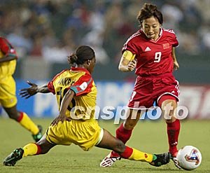 相關報道:中新社:一比零不足喜 中國女足小勝加納有隱憂 (2003-09-22 15:44:14)