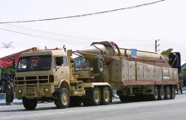 9月22日,在伊朗首都德黑蘭舉行的閱兵式上,一輛卡車運載著該國最新研制的“流星-3型”中程彈道導彈。當天,伊朗舉行活動紀念兩伊戰爭爆發23周年,紀念活動中展示了最新研制的“流星-3型”中程彈道導彈。該型導彈已經于2003年7月裝備伊朗伊斯蘭革命衛隊。伊朗一名高級官員當天也表示,將減少與國際原子能機構的合作。