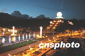 國慶節前夕的云南省大理明珠廣場燈火輝煌,明珠熠熠生輝,構成這座被稱為“東方日內瓦”小城的又一景觀。中新社記者:納家驊