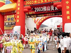 九月三十日,為期八天的“二OO三佛山美食歡樂節(jié)”揭幕,集中佛山烹飪師傅巧手制作的美食和特色食品,同時也引入內(nèi)地及世界各地的風味美食。中新社記者:辛述之