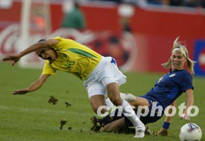 圖:瑞典隊擊敗巴西隊進入女足世界杯四強