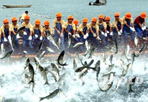 良好的生態(tài)環(huán)境使浙江千島湖不僅成為著名的旅游勝地,同時也是淡水魚十分豐富的地區(qū)。十月上旬,一年一度的巨網(wǎng)捕魚成為了千島湖旅游的另一新亮點(diǎn)。作者:李杭生