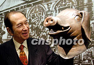 圖為國務委員陳至立與何鴻燊博士共同為圓明園國寶“豬首”銅像揭幕。