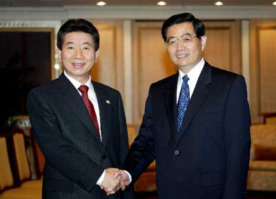 胡錦濤對盧武鉉說:今年7月你訪問中國時,我們雙方?jīng)Q定建立中韓全面合作伙伴關(guān)系,并確定了雙邊合作的重點領(lǐng)域。在這一精神的推動下,兩國在各方面的合作都取得了新的進(jìn)展。兩國領(lǐng)導(dǎo)人經(jīng)常見面體現(xiàn)了我們之間的良好關(guān)系。目前,兩國經(jīng)貿(mào)合作發(fā)展迅速,今年1月至9月,雙邊貿(mào)易額已達(dá)440億美元。我們認(rèn)為,中韓關(guān)系的順利發(fā)展,友好合作的不斷擴大,為中韓兩國人民帶來了實實在在的利益。希望雙方進(jìn)一步共同努力,積極開拓,將中韓全面合作伙伴關(guān)系落到實處。