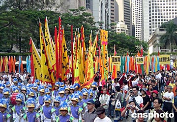 多圖:香港市民巡游慶中國載人航天飛行成功