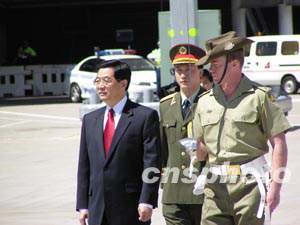 胡錦濤主席檢閱了澳大利亞三軍儀仗隊,并發表了書面講話。