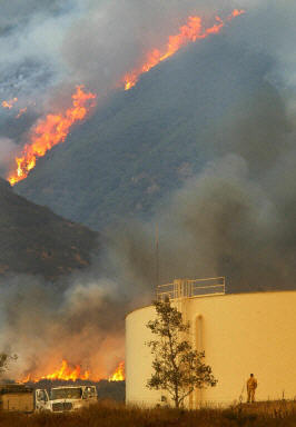 經初步調查,21日燃起的這起火災可能是人為原因引起的。即將離任的加州州長戴維斯已宣布火災區域進入緊急狀態,他表示將要求布什總統提供聯邦貸款,以撫恤在大火中失去家園的人。