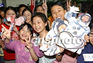 圖:香港小學生發揮創意迎楊利偉訪港 (2003-10-31 20:27:14)