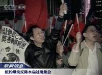 中新網(wǎng)11月1日電 據(jù)央視國(guó)際報(bào)道,美國(guó)紐約各界人士約上千人于當(dāng)?shù)貢r(shí)間10月31日晚在臺(tái)灣當(dāng)局領(lǐng)導(dǎo)人陳水扁所住的曼哈頓華道夫-阿斯多里亞飯店前舉行抗議示威,反對(duì)他借“過(guò)境”美國(guó)之機(jī)搞“臺(tái)獨(dú)”。