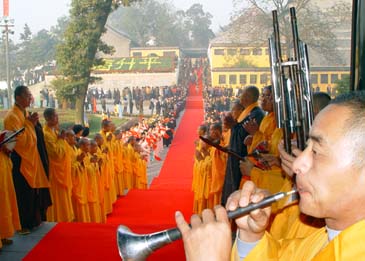 揚州市市長季建業(yè)在會上致辭。國家宗教事務(wù)局局長葉小文、日本奈良唐招提寺益田快范長老、臺灣佛光山開山宗長星云、中日友好協(xié)會副會長文遲等講了話。揚州大明寺方丈能修也在會上致了辭。