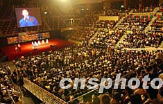 中國首次載人航天飛行代表團11月3日在香港伊利莎白體育館與2500多名香港中、小學生舉行見面會。中新社記者:錢興強