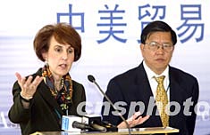 博鰲亞洲論壇2003年會十一月三日舉行中美貿易關系:挑戰(zhàn)與合作主題午餐會,昔日中美貿易談判對手美國前貿易代表巴舍夫斯基與現(xiàn)任博鰲亞洲論壇秘書長的龍永圖再度相遇,以論壇的形式共同探討中美貿易關系。中新社記者:毛建軍