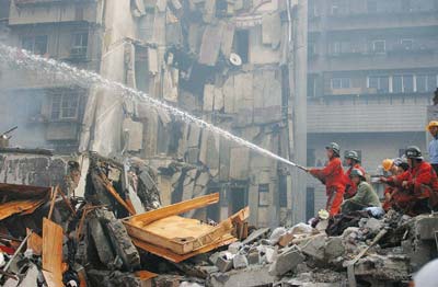 事故發生后,有關部門緊急組織兩臺挖掘機和一臺工程搶險車全力清運倒塌樓房的廢渣,六臺運輸車來回穿梭地搶運渣土,機械和人工兩條作業線交叉進行,千余名搶險隊員按二十人一組緊張地輪番作業。后經消防官兵和廣大民眾的奮力搶救,至發稿時止,已從廢墟中搶救出九名消防官兵,其中在廢墟中擠壓二十七小時的消防班長江春茂也被成功救活,另外八名消防官兵英勇殉職。還有十三名官兵被埋廢墟,正在緊急搜救中。
