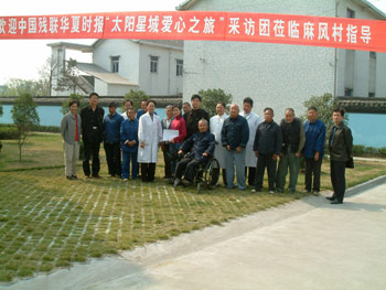 當我們一行到達麻風村門口時,遠遠就看見門口有一群統一身穿藍布衫的老人,在好奇地張望著。麻風村病院的院長告訴我們,這就是麻風病患者,他們中大部分人幾十年來都沒有離開過麻風村一步,也幾乎沒有人會來這里與他們交往,據院長介紹,象愛心團這樣來采訪看望他們,在該院建立以來還是第一次。
