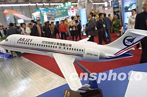 圖:中國新一代支線飛機(jī)ARJ21亮相上海工博會