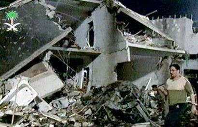 沙特首都利雅得當地時間8日夜發生恐怖爆炸事件,造成20到30人死亡。圖為房屋被爆炸摧毀后的殘骸。