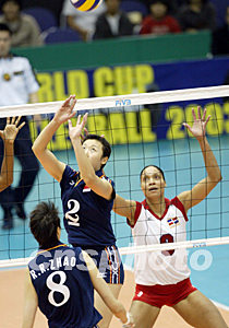 在評估了對手的實力之后,中國女排今天并沒有遣上全部主力,此前每場首發的周蘇紅和王麗娜只在場邊作壁上觀。盡管阿根廷隊曾在第二局和第三局都曾有過比分領先的階段,該隊十號隊員的發球和強攻,以及阿隊特有的手足并用,也都有過不俗表現,但綜觀整個比賽,中國隊始終牢牢控制了場上形勢,毫無險情地維持到了終場勝局。