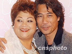 香港明星肥媽、夏韶聲11月8日晚出席在香港會展中心舉行的“2003中華小姐環球大賽”總決賽頒獎儀式并演唱。中新社記者:錢興強