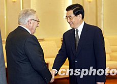 胡錦濤今天在人民大會(huì)堂會(huì)見了美國(guó)前國(guó)務(wù)卿基辛格博士,賓主進(jìn)行了友好交談。胡錦濤對(duì)基辛格長(zhǎng)期致力于中美友好、為中美關(guān)系正常化作出的歷史性貢獻(xiàn)表示贊賞。