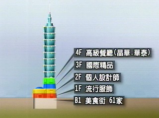 臺北101大樓的精品區要到明年才會亮相,入駐的精品品牌名單則要到開幕時才會對外公布,保密的功夫到了極點。臺北101總監梵德維表示,臺北101的精品將以全系列產品為主,包括服裝、珠寶與配件都將隨品牌一并進駐。