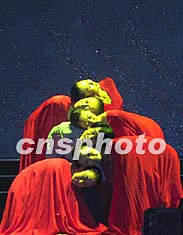 空政歌舞團為中國航天科工集團061基地表演的舞蹈《秦王點兵》,充滿了陽剛之氣。中新社記者 孫自法 攝