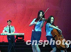 空政歌舞團演員表演器樂三重奏《野蜂飛舞》。中新社記者 孫自法 攝