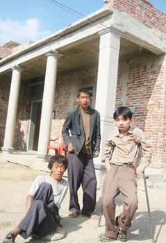 戴金龍與弟弟們在政府蓋的新房子前(華夏時報圖)