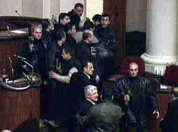 圖:格魯吉亞總統謝瓦爾德納澤倉促離開國會大廈