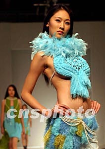 浙江工程學院國際時裝技術學院學生錢麗霞的作品《漣漪》二十三日在北京獲得第二屆中國針編織時裝設計大賽頭獎。中新社記者:史利