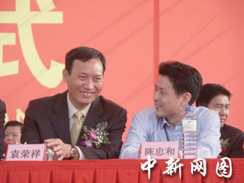 陳忠和與漳州市委書記袁榮祥在花博會開幕式上相談甚歡。蔡文原 攝